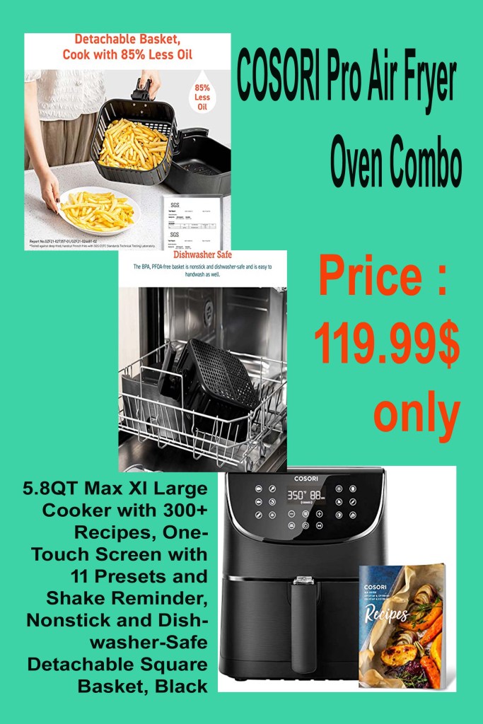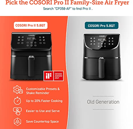 COSORI Pro Air Fryer Oven Combo, 5.8QT Max Xl Large Cooker with 300+ Recipes, One-Touch Screen with 11 Presets and Shake Reminder, Nonstick and Dishwasher-Safe Detachable Square Basket, Black