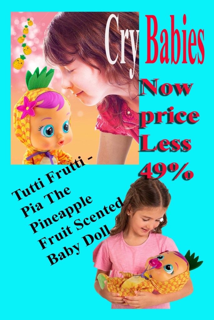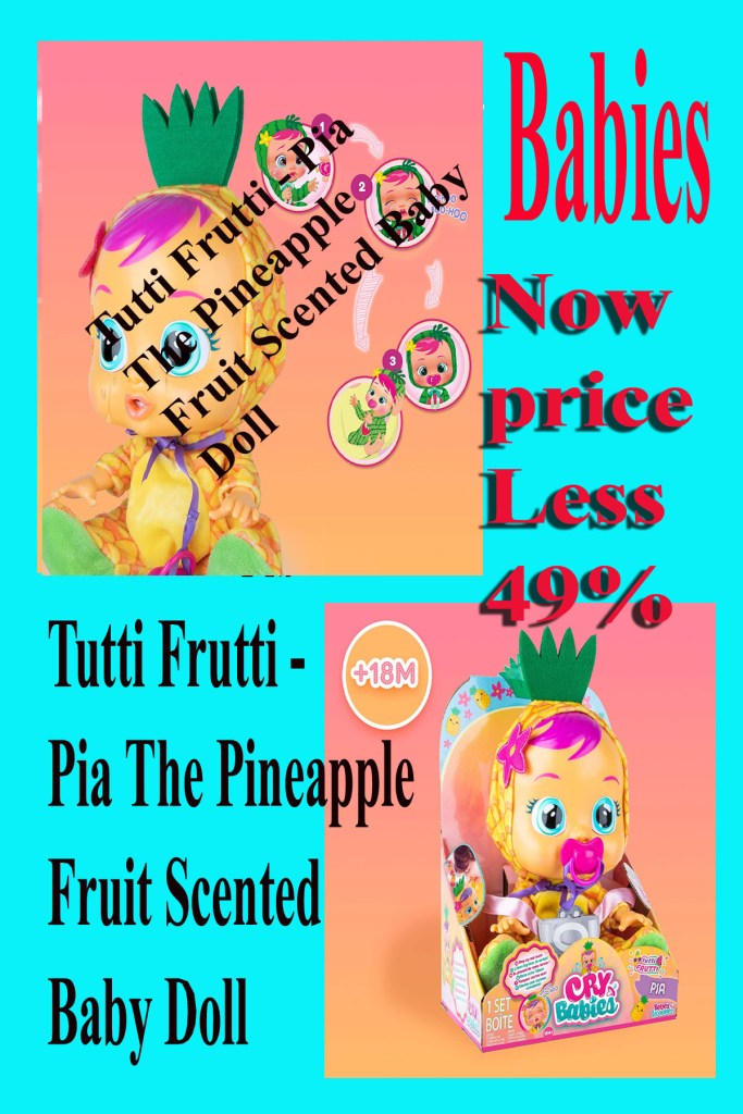 - This 12″ Cry Babies Baby doll smells like pineapple, just like the theme of her pajamas!