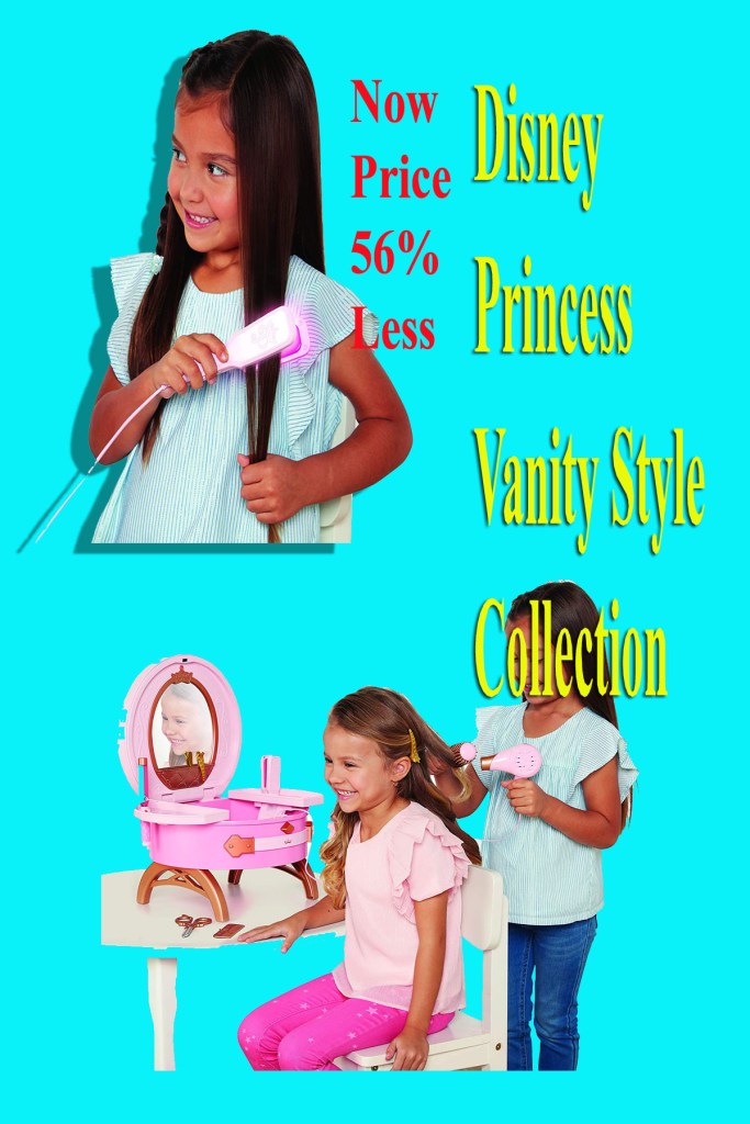 - Includes: 1 Vanity, 1 Play Flat Iron, 1 Play Curling Iron, 1 Play Hair Dryer, 1 Curling Brush, 1 Hair Comb, 1 Pair of Play Scissors and 2 Hair Clips